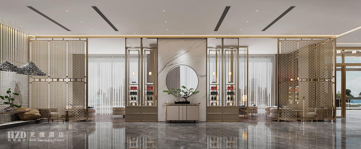 3.注重整体形成酒店的大堂是独立的空间,与客房等地独立开来,既是一个信息和人流的交流中心也是一个酒店重要的形象标志,注重整体感的形成,设计上遵循“多样而有机的统一”。